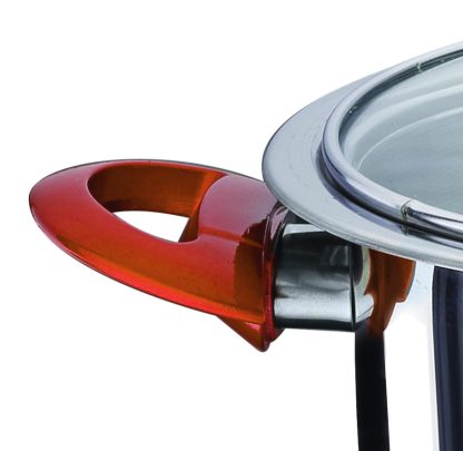- Asas Rojas: Gracias a las asas de color rojo, podrá dar a su cocina un toque original presentando una nota de color distinguiéndose del diseño típico de las baterías de cocina.