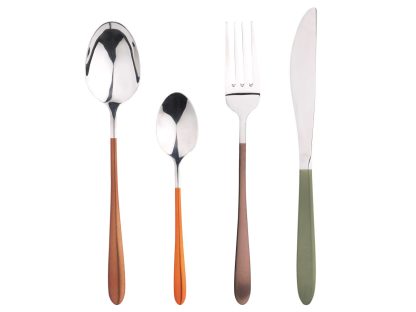 • Diseño Muy Moderno en Colores: Su diseño sin decorado y con vivos colores en acabado mate de las empuñaduras hace que pueda combinar con cualquier vajilla y encajar en cualquier situación. De esta forma este juego de cubiertos sirve tanto para uso diario como para una comida de etiqueta.