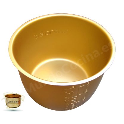 La Cubeta Daikin Gold Para Olla Programable de 6 litros, se puede comprar como cubeta de repuesto para su olla programable, o para tener una segunda cubeta.