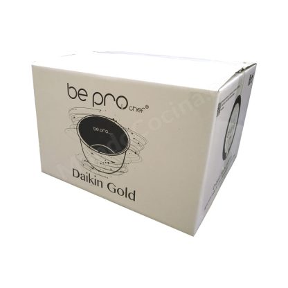 Esta nueva versión Daikin Gold es conocida como versión «oro» o dorada y es una modernización del fantástico antiadherente Daikin, más resistente y duradera, hará que las cualidades antiadherentes de su cubeta permanezcan durante años como el primer día.