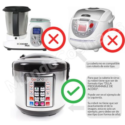 Si su robot NO es tipo «olla», la cubeta seguramente no va a ser compatible con su olla, por lo que le recomendamos que descarte su compra.
