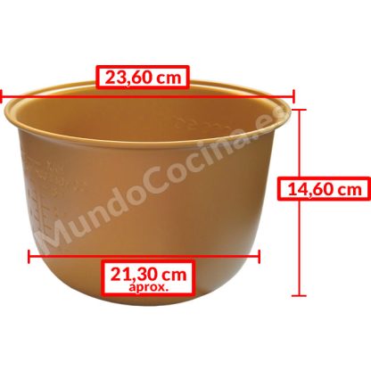 cubeta-de-5-litros-daikin-gold-olla-programable-robot-de-cocina-dorada-3Observe la fotografía con las medidas exactas (si necesita ampliar la imagen, puede encontrarla también en la galería de imágenes).
