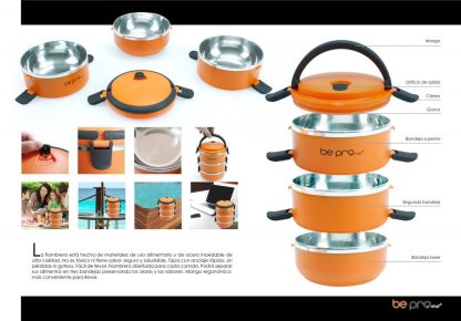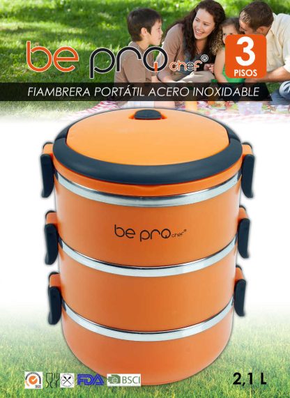 Esta fiambrera triple ha sido diseñada por Be Pro Chef para que pueda llevar la comida al trabajo, de camping o donde le parezca de manera muy cómoda y práctica: