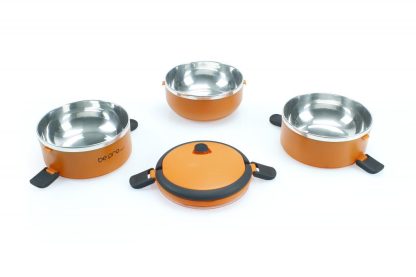 - Interior de Acero Inoxidable: La superficie interior de las tres fiambreras es acero inoxidable, por lo que la durabilidad y resistencia están garantizadas. Por supuesto puede comer directamente sobre ellas, sin necesidad de platos adicionales sobre los que comer.