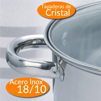 - Tapaderas de cristal para que pueda ver en todo momento como va el proceso de cocinado sin necesidad de destapar la tapadera.