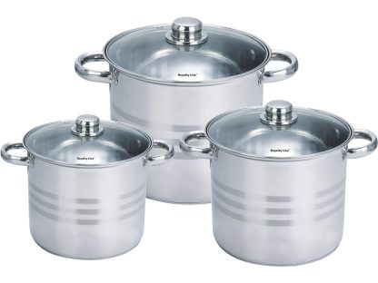 Le presentamos el nuevo Set de Ollas de Acero Inoxidable Mate Royalty Line. Un set de ollas, con el que tendrá los tamaños pequeños y medianos de olla alta más comunes en un solo juego ¡Desde 5 a 8 litros!