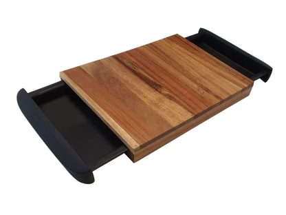 Tabla de Corte de Madera con Cajones, hecha en madera de acacia y con 2 cajones. Sana y ecológica. Sirve de presentación ¡Vea tabla de cortar con cajones!