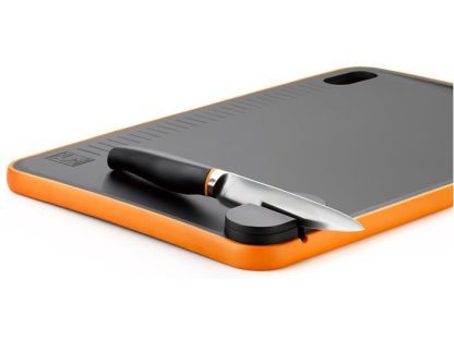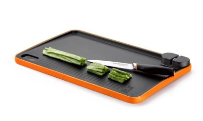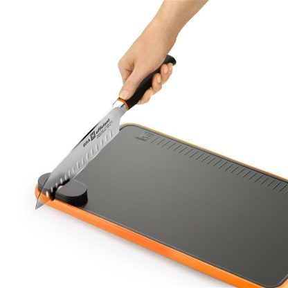 - Con Afilador: Incluye un afilador en un extremo de la propia tabla. Pase el cuhillo 2 o 3 veces antes de usarla y obtendrá cortes perfectos con un cuchillo afilado de verdad.