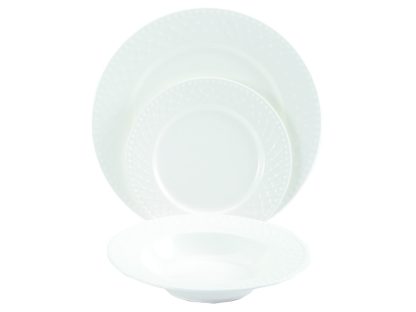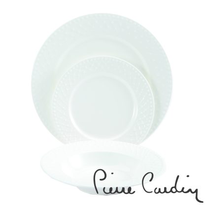 Esta Vajilla de Porcelana blanca con un precioso relieve ha sido diseñada con muy buen gusto por Pierre Cardin y gracias a su diseño elegante y neutro le servirá tanto para diario como para etiqueta.