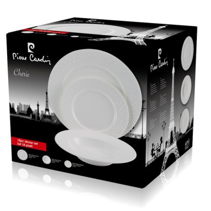 Su diseño es tan sencillo que permite que la vajilla se utilice tanto para diario como para las ocasiones mas formales. Pero a diferencia de otras vajillas blancas, Pierre Cardin ha decorado el ala del plato con un precioso relieve que simula un labrado y da un toque diferente muy fino.